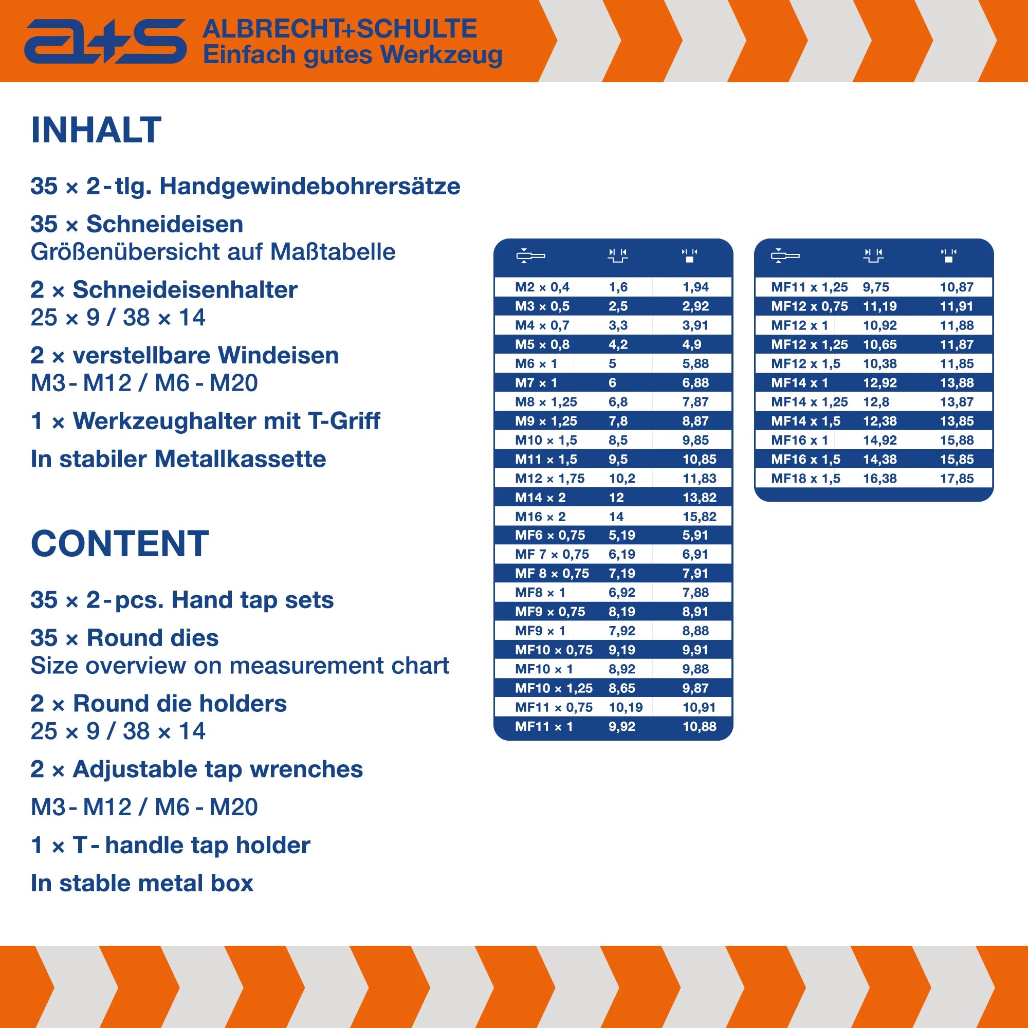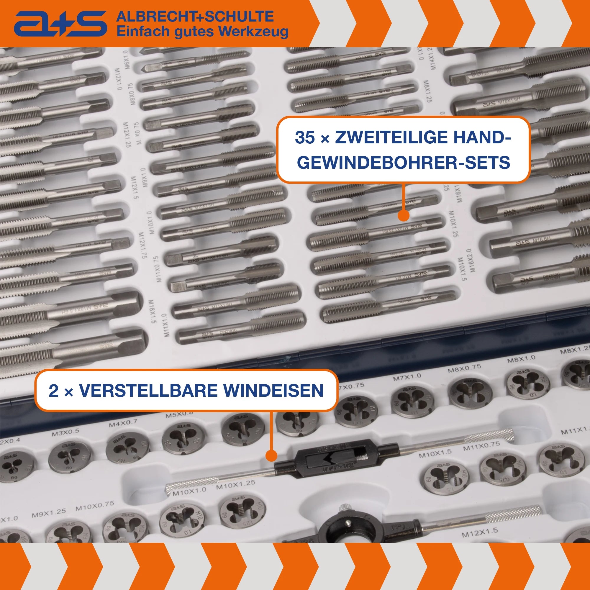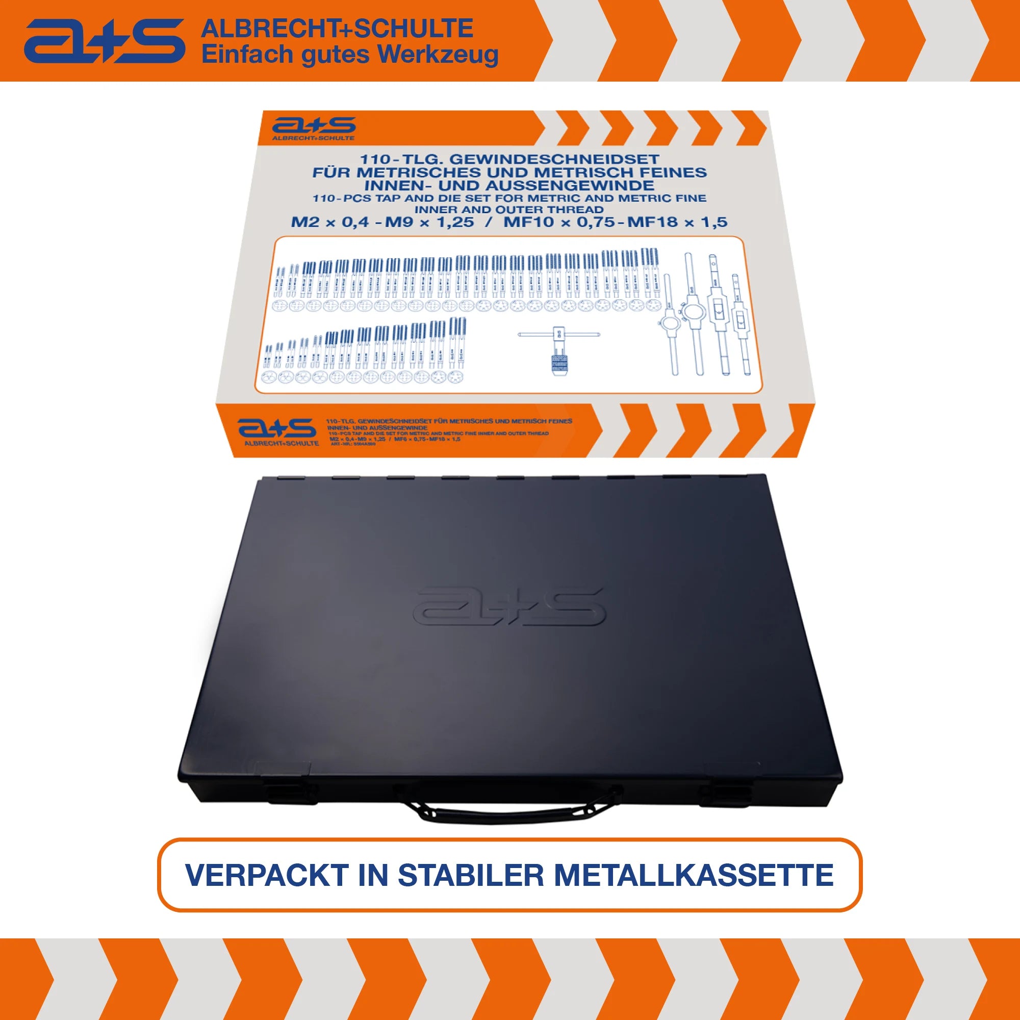 a+s Gewindeschneider-Set 110-tlg. – für präzise metrische & metrisch-feine Gewinde