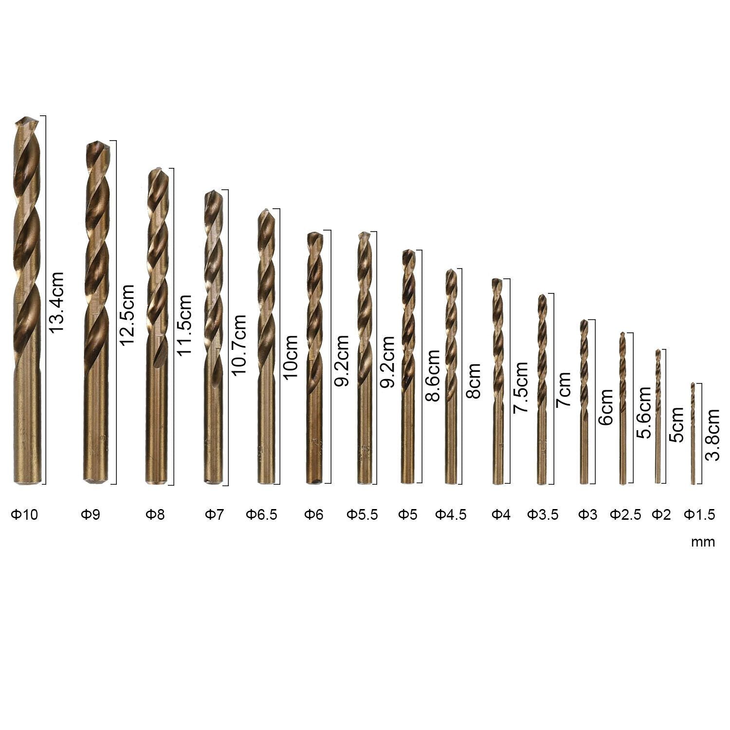 10 x Stk. Spiralbohrer Metallbohrer DIN 388 HSSE 5% Cobalt (0,5 mm - 10,0 mm) - Bohrer-Outlet